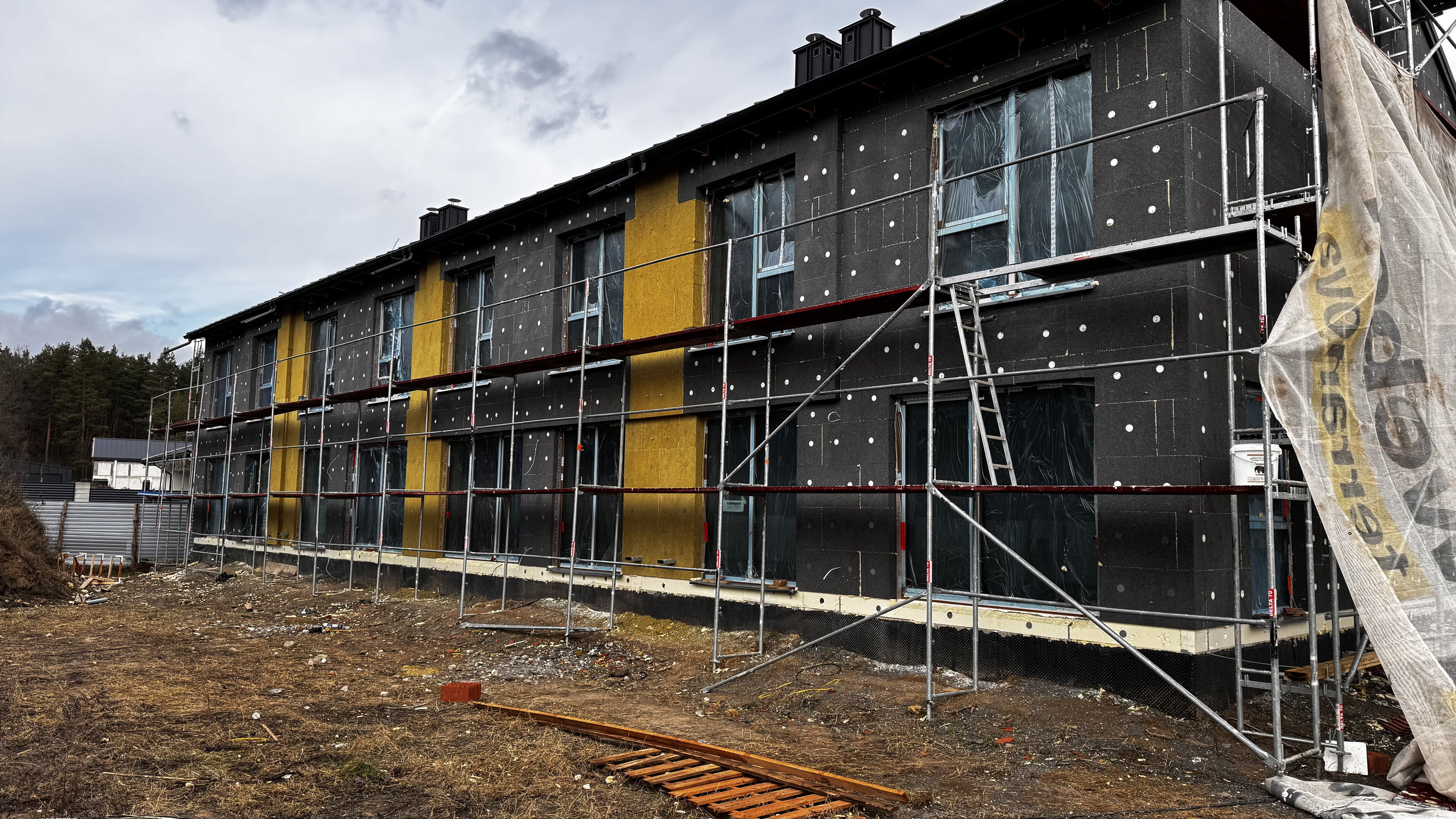 Pod koniec 2024 roku rozpoczęto prace nad konstrukcją dachów. Wszystkie budynki zostały wyposażone w izolację termiczną i przeciwwilgociową, co zapewniło komfort cieplny oraz energooszczędność. Równolegle zamontowano stolarkę okienną. Dzięki temu bryły budynków zostały zamknięte na czas zimy i przygotowane do dalszych prac wykończeniowych. Zabezpieczenie konstrukcji na tym etapie umożliwiło sprawne przejście do kolejnych etapów inwestycji.